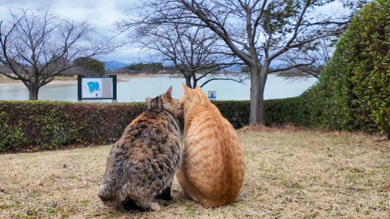 ニャ~ンとご挨拶を済ませると、茶色猫ちゃんは公園で佇むキジトラ猫ちゃんの傍へと移動。