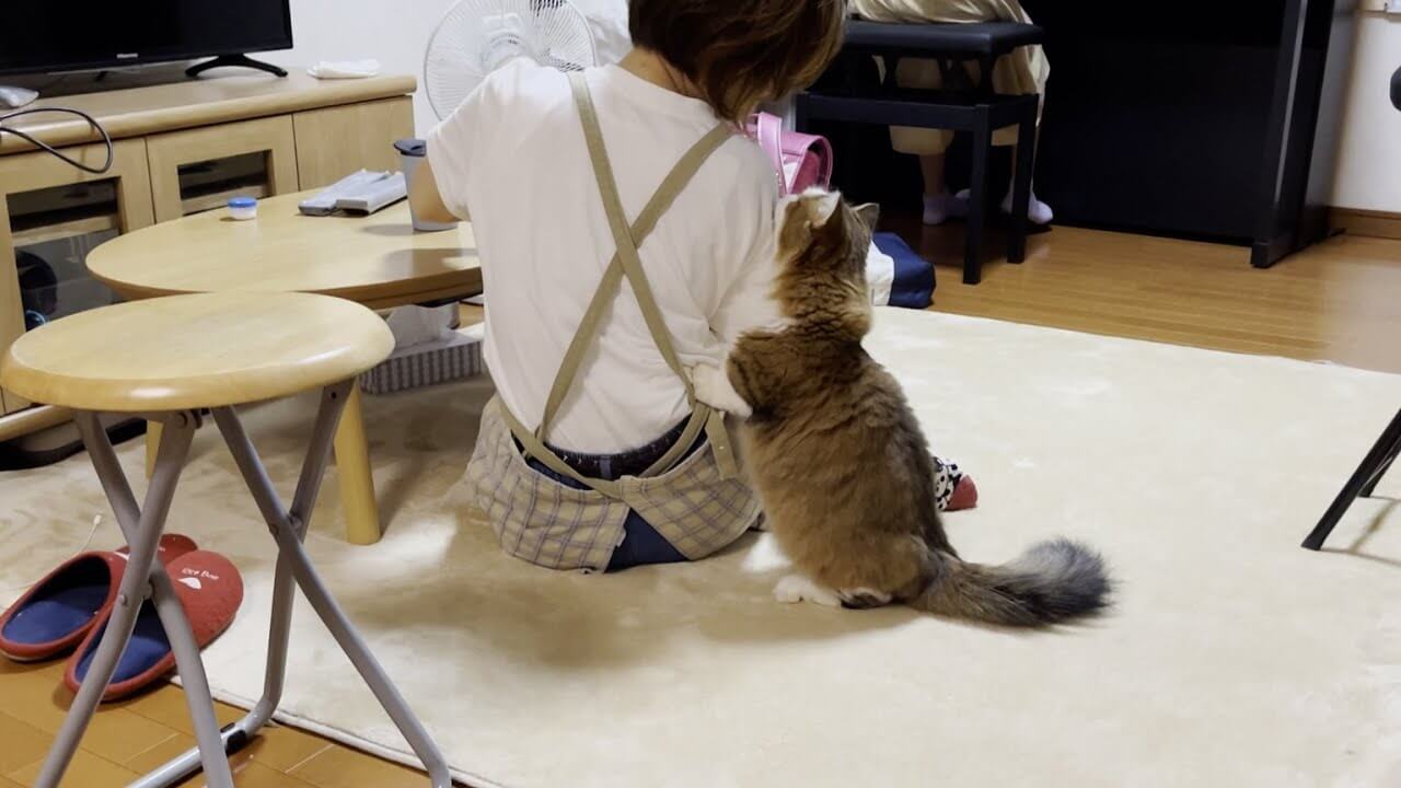 ふっさふさな猫の秀吉がお母さんにスリスリしながら何やら言いたげです。