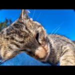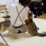 本当は嬉しいはずなのに、妙に落ち着き払ってお父さんが2階に上がって来るのを待つ豆大福です。リビングでお父さんと一緒にくつろぐ豆大福は、どことなくウキウキしているようです。