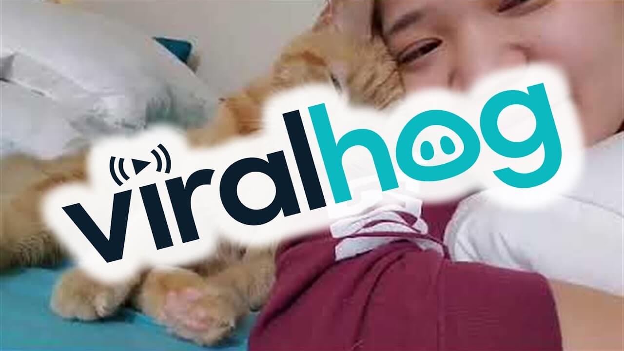 猫さんも飼い主さんも相手を思う気持ちは一緒。まさに相思相愛ですね。女の子は何度も何度も猫さんの顔にキスをしています。