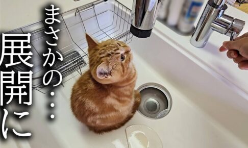 茶太郎は、なんとキッチンのシンクのなかに入り込んで蛇口からの水を浴びながらもへっちゃらで排水口に見入っているのでした。
