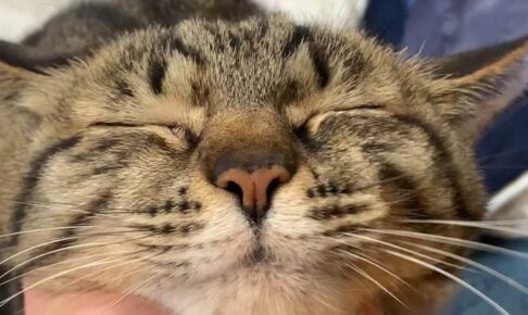 頭を撫でてあげると、そうそう、そこそこ!と満足そうにしていましたが、顎の下をカキカキしてあげると、そこはまさにツボだったようで心地よいゴロゴロ音が鳴り響き始めたのでした。