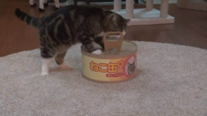 猫缶をはなちゃんから奪い取るジャイアンなまるちゃん