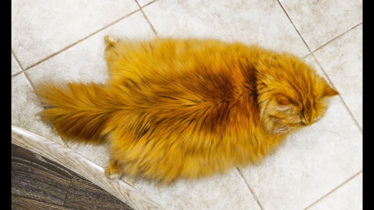 このねぼすけ猫さんは、背伸びをしてそのままペタンと四肢をほおりだして真っ平になってしまいます。