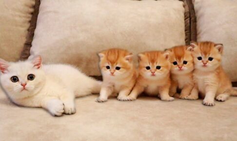 ソファの上で4兄弟と顔合わせをしたココの顔はとてもびっくりしたような表情になっています。まさかこの4匹が自分の兄弟だとは夢にも思っていないでしょう。