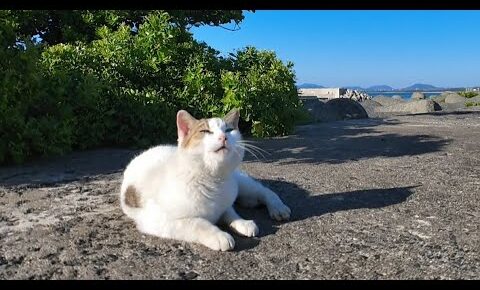 風もあまりない穏やかな日に、防波堤でまったり昼寝していた猫さんでしたが、主さんがたっぷりモフモフしてくれるのでとってもご機嫌そうなお顔をしてくれています。