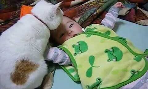 赤ちゃんへのスリスリ攻撃が激しすぎる猫