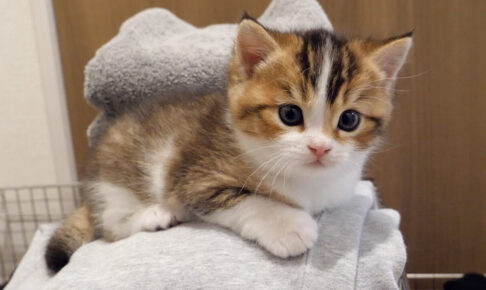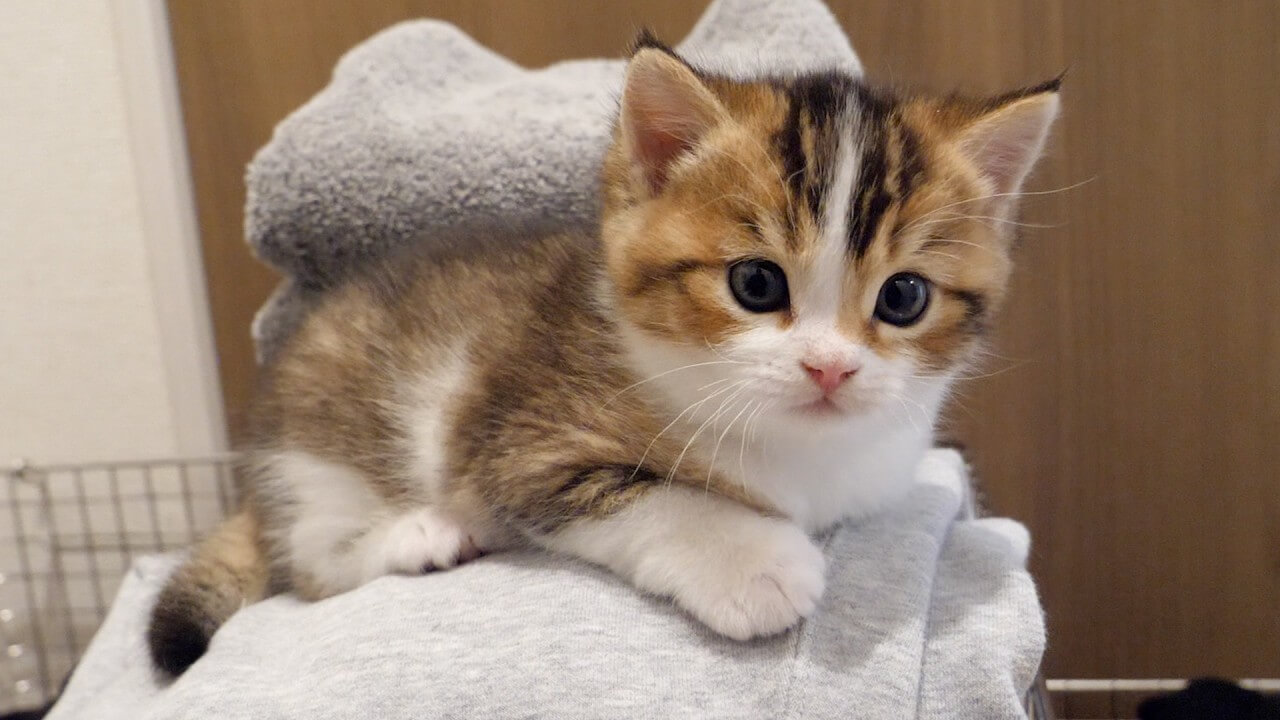 洗濯物の上でドヤ顔になっている子猫が可愛い