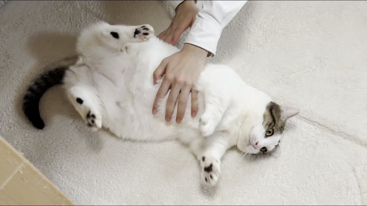 コロコロと体を転がしてもらって喜ぶ猫が可愛すぎる動画