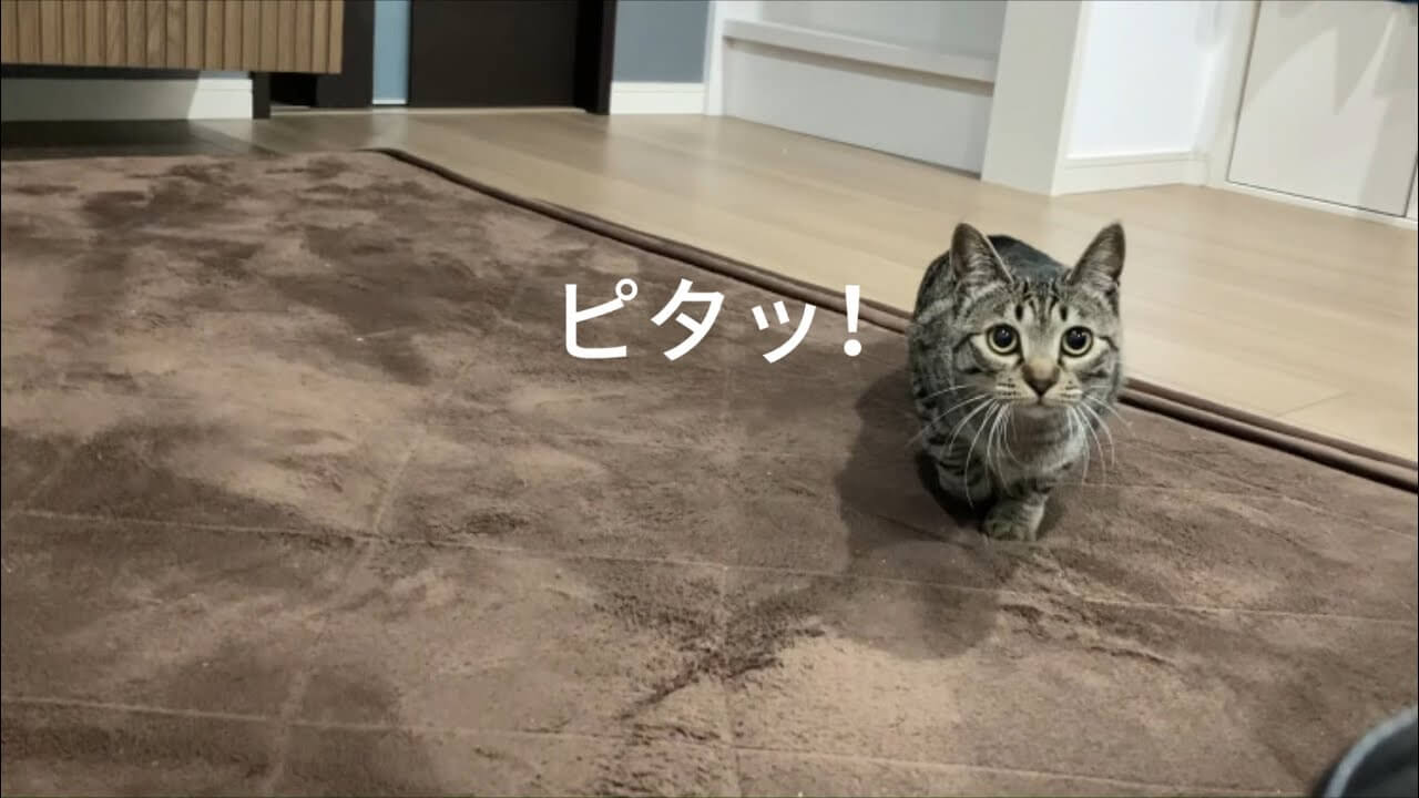 好奇心旺盛な様子でカメラを見ているキジトラ猫ちゃんの姿が印象的でしたし、見つめているキジトラ猫ちゃんに対してだるまさんが転んだゲームをしてあげる飼い主さんの優しさが良かったです。