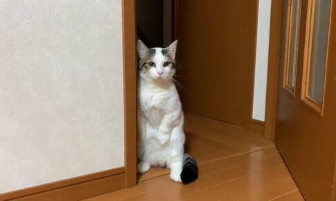 何ニャ?と違和感たっぷりに見つめる姿が愛らしいのでご覧ください。