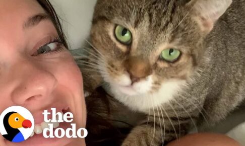 捨て猫だった猫のカレンは新しい飼い主さんにいつも甘えてきます。