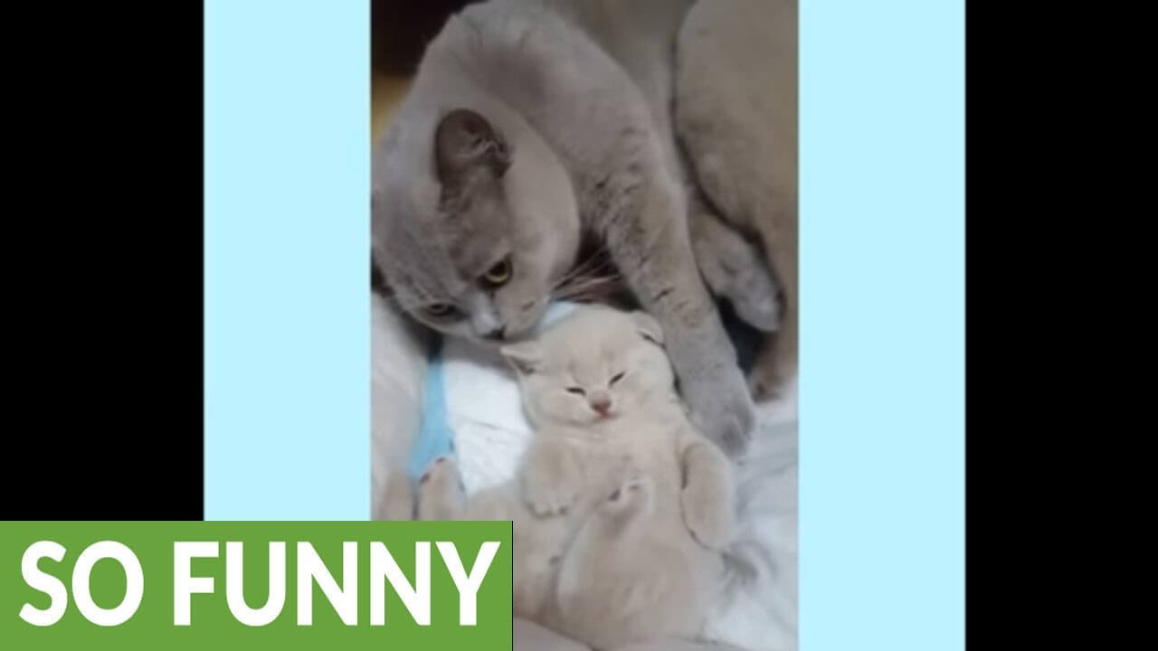 猫の親子の間には強い絆があることがはっきり感じられる動画ですね。