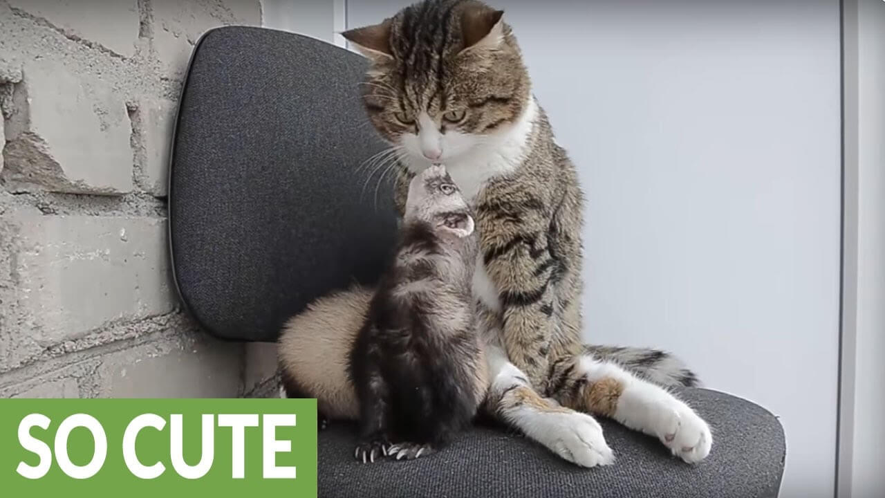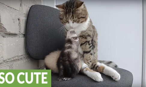 仲良く過ごしているシーンも可愛らしいのですが、フェレットがいなくなった時の猫ちゃんのキョトンとした表情が可愛らしいのでご覧ください。