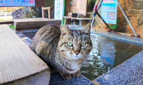 今回ご紹介するのは温泉街の足湯で過ごしている猫ちゃんです。