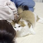 ハスキーも猫さんに丁寧なマッサージをしてもらって、うっとり顔になっています。