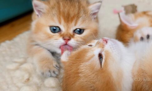 しかし他の子猫ちゃんは床にコロンと寝転び、だるそうにしていました。