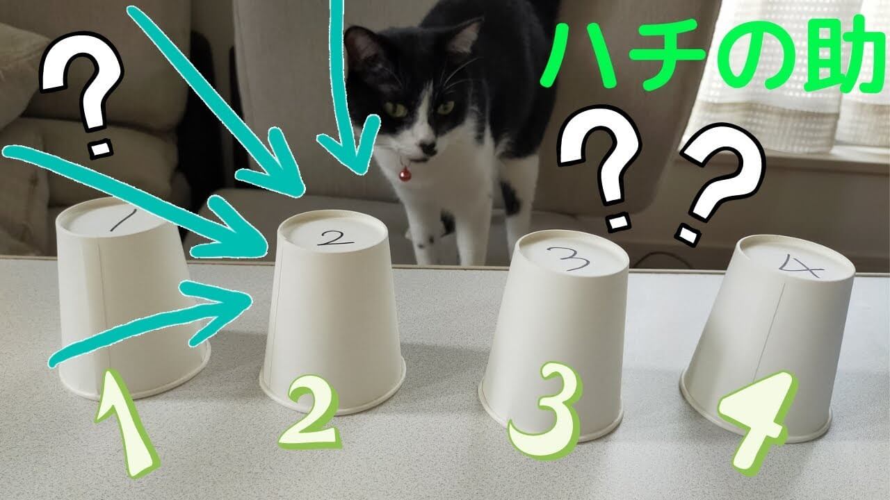 見事一発で鈴の入った紙コップを的中させたハチワレ猫ちゃんの洞察力に驚きましたし、的中させた後にカメラを見つめているハチワレ猫ちゃんの視線がどこか誇らしげで可愛かったです。