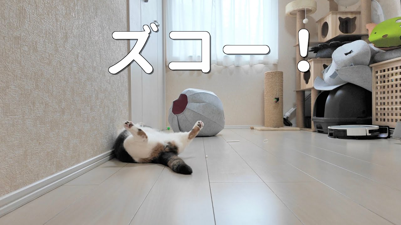 背中をしたにして大の字に広がり後ろ足も180度に開脚してしまいとんだずっこけを披露してしまったようです。