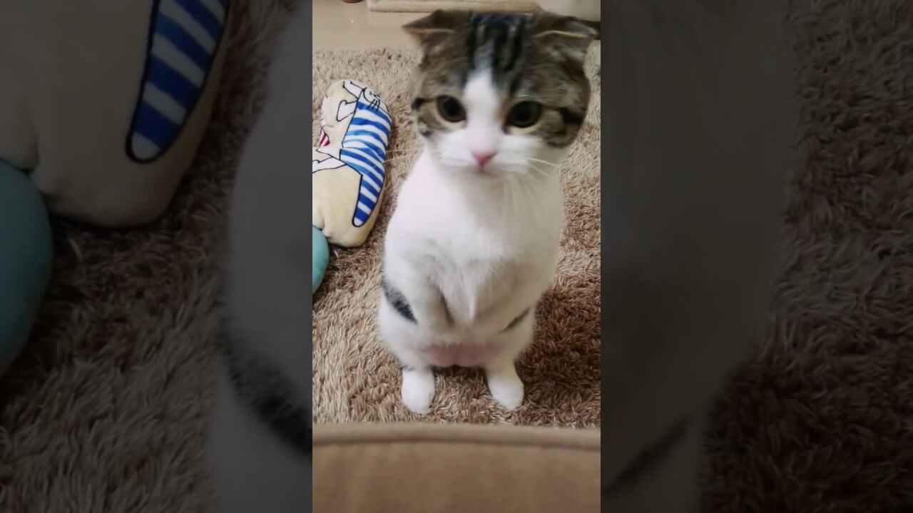後ろ足でバランスよく立ち上がるマンチカンがキャワ!