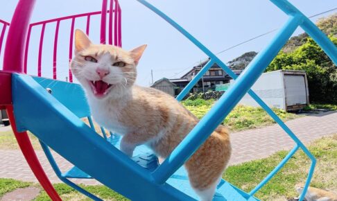 公園の滑り台で遊ぶニャンコさんが可愛い