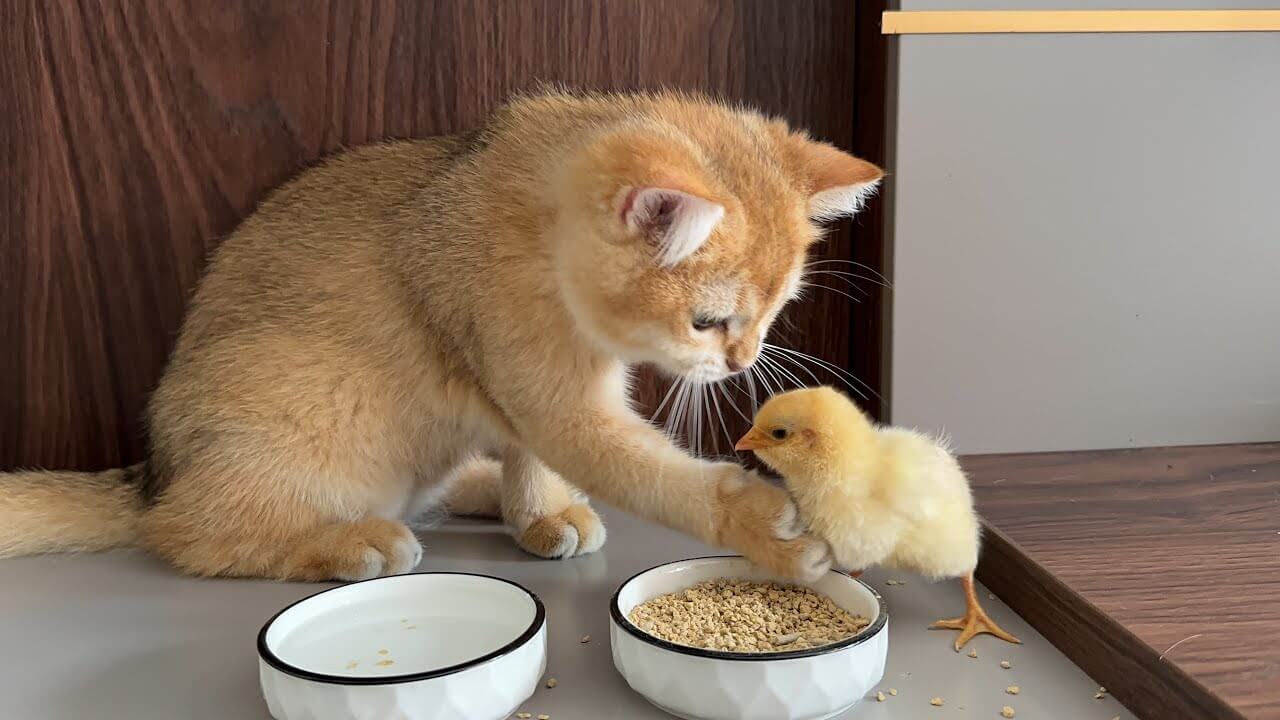 ひよこの保護者気取りな子猫