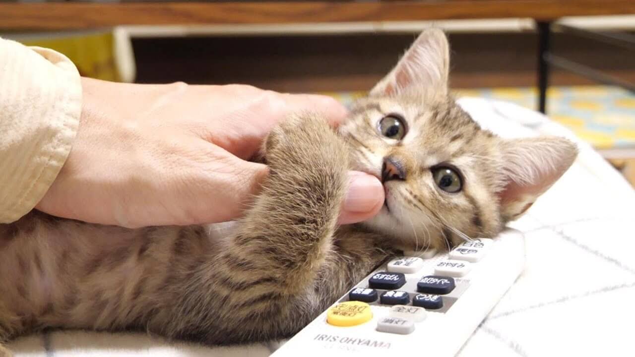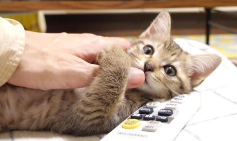 やがて子猫ちゃんの指吸いが収まったので、飼い主さんは指を離そうとします。