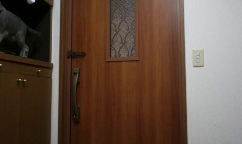 これだと当然玄関ドアが開くはずもなく、飼い主さんがドアを開けようとしても少ししか開きません。