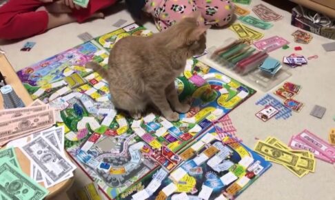 ある時は、家族で人生ゲームをしていると、やはりそこへやってくるのはひのきです。