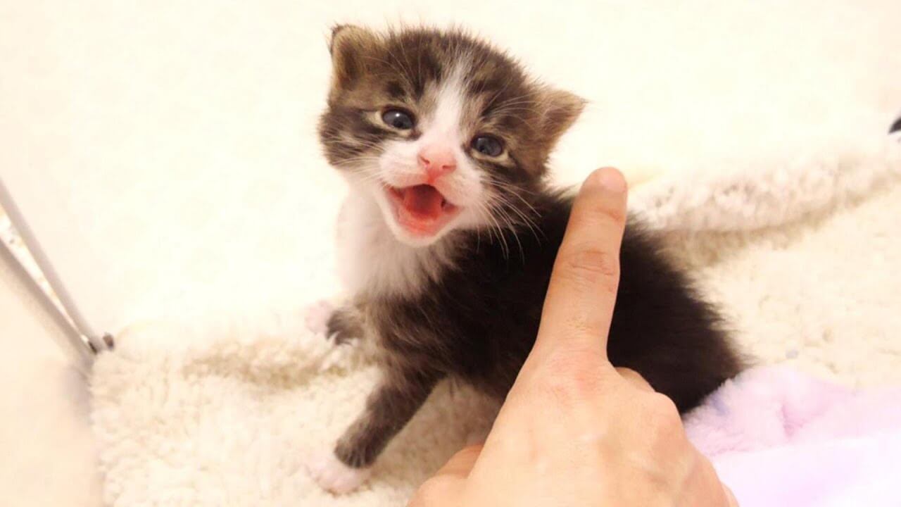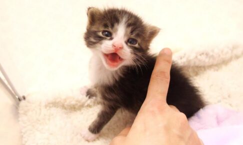 子猫のユメちゃんが飼い主さんに体を撫でてもらっているシーンから始まります。