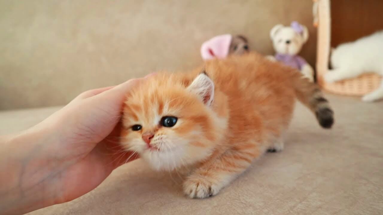 茶トラ猫の子猫ちゃんが、飼い主さんに顔を撫でてもらっている場面から始まります。