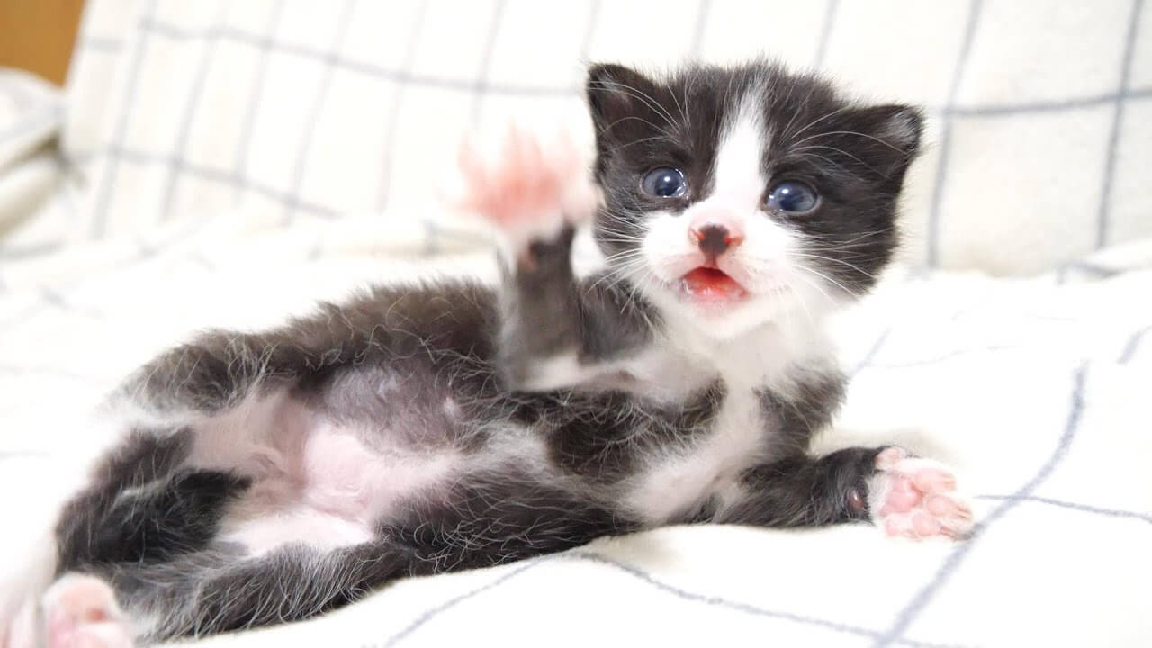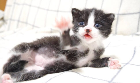 哺乳瓶から上手にミルクを飲みほしたあとは、ゴロゴロと大音量の喉を鳴らし甘える子猫たちです。