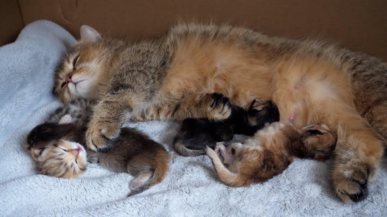 出産の疲れも癒す間もなく赤ちゃん猫のお世話に全力投球な母猫