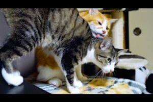 飼い主の膝の上を狙って子猫同士の奪い合いが勃発!