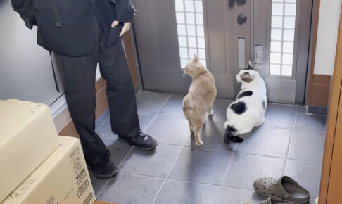 今も昔も猫のおにいちゃんお見送り隊は同じ光景です