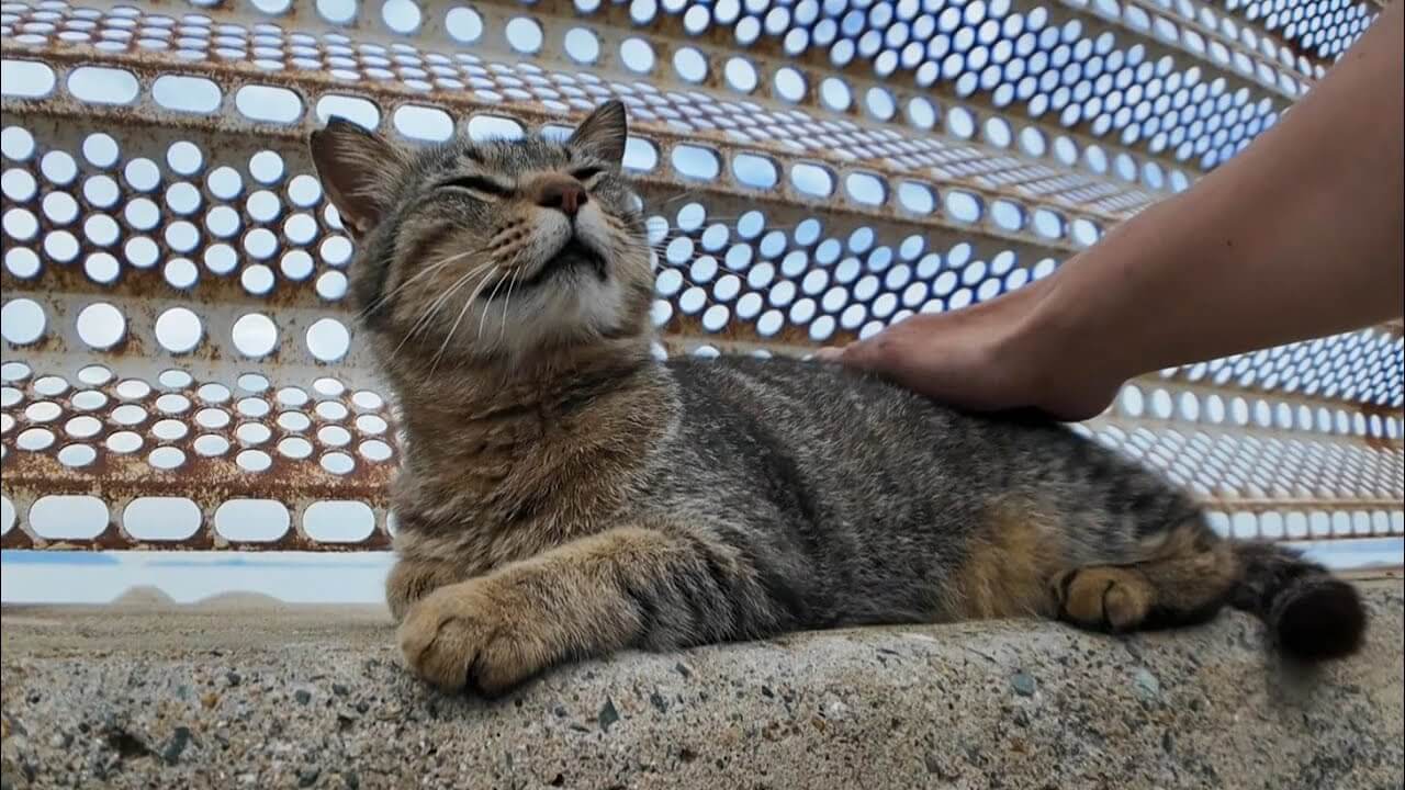 防波堤で佇む野良キジトラ猫を撫でてみた