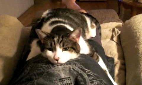 さらに男性が、まるで催眠術をかけるように優しく話しかけると猫はそれにこたえるかのように、ますますうっとりとした表情を見せ、今にも眠ってしまいそうです。