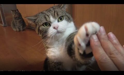 お母さんがはなちゃんに手を差し出すと、なんと!はなちゃんは、激しくお母さんの手をはたきおとそうとしました。どうやらハイタッチしてくれるのは、まるちゃんだけのようです。