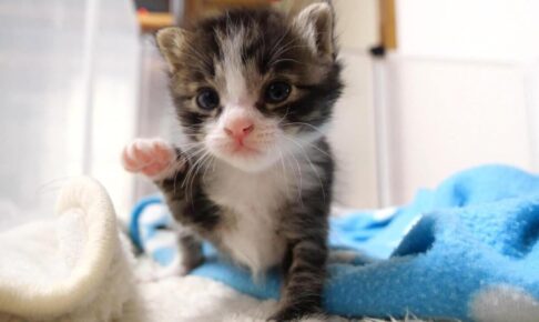 その後子猫ちゃんはママさんの姿を確認すると、チョコチョコと歩いて膝上へと移動。