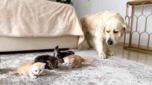 ゴールデンレトリバーを子猫ちゃん達に会わせてみた