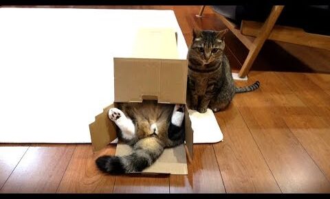 一方で、はなちゃんのほうは箱に入ることにはあまり興味がなさそうで、ただ箱のそばで座って上を見上げてぼーっとしています。
