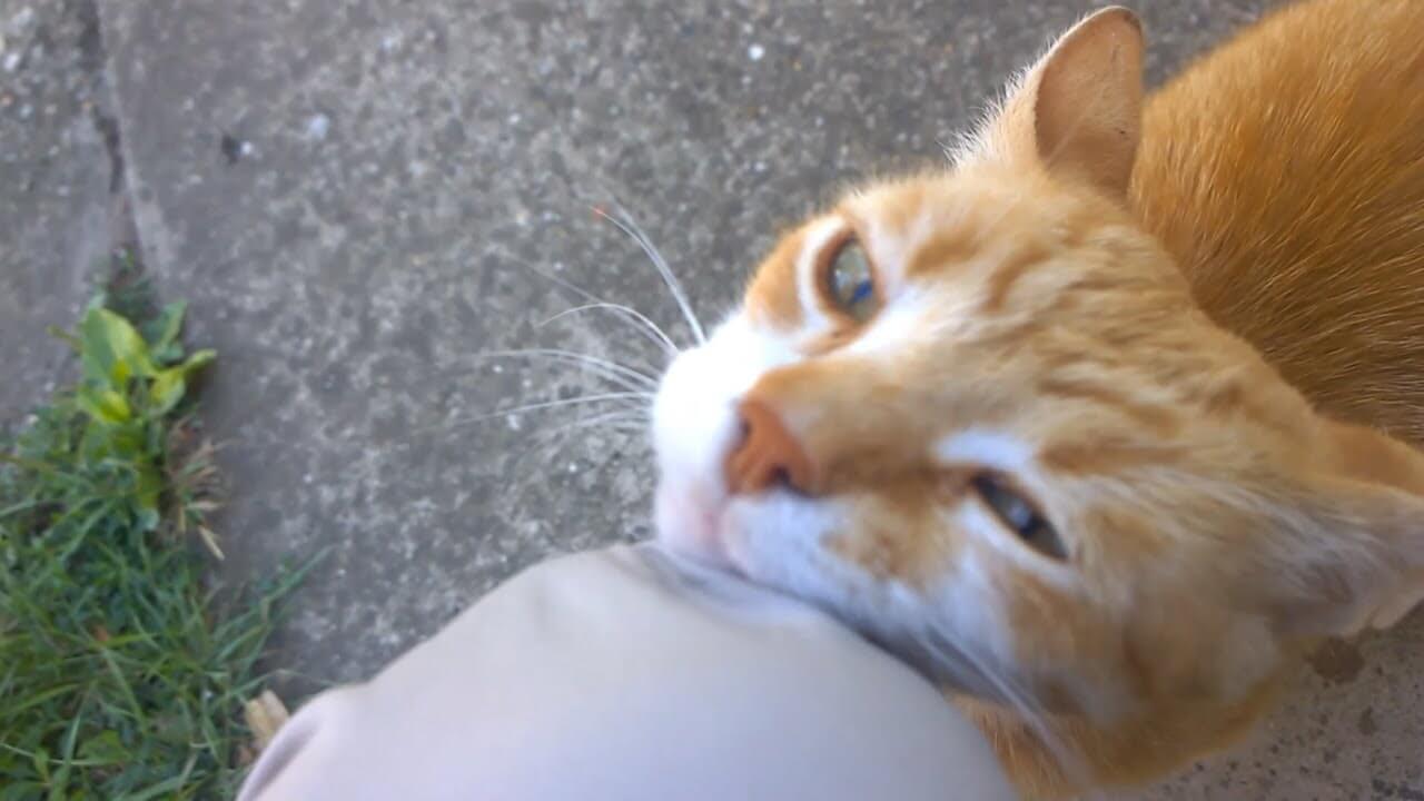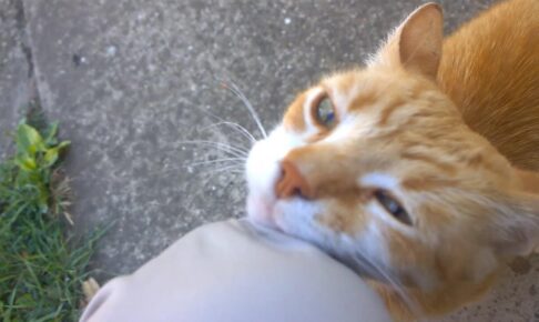 お父さんが帰宅して家のそばまで近づいてくると、すぐにニャーニャーと猫の鳴き声が聞こえてきました。可愛い茶トラの猫さんがお父さんの帰宅を心から喜んでくれています。