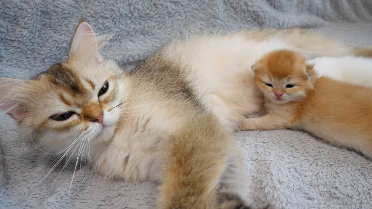 今回ご紹介するのは母猫のお腹に身体を寄せて眠る子猫ちゃん達です。