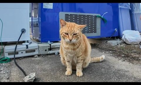 港町を歩いているととってもフレンドリーな茶トラ猫さんが自動販売機の後ろから出てきて、トコトコと主さんに近づいてきました。