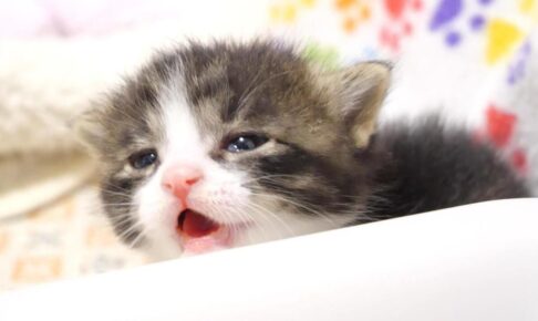前足をバタバタさせてミルクをおねだりする子猫の動画