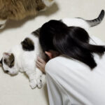 でも満腹になると、飼い主さんの膝上で幸せそうに甘えていました。