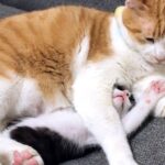 ベッドでとろける猫と好奇心いっぱいの訪問者の愛らしい日常