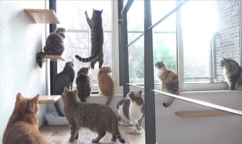 10匹もの猫たちがいても集団行動するわけではないので、1匹1匹がそれぞれの時間をマイペースに過ごしています。