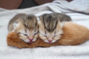 寝床の中だけを動きまわる赤ちゃん猫ですが、もう少ししたら寝床の外の広い世界もその目で見つめることができるようになるのでしょう。