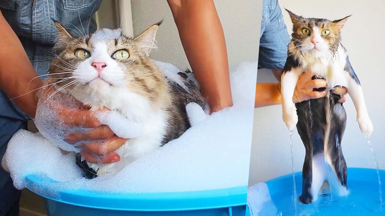 全身を綺麗に洗ってもらう猫ちゃんが可愛すぎる動画